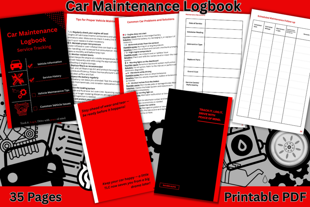 A 35-page printable car maintenance logbook (PDF format) designed to help you track services, log replaced parts, and plan future maintenance. Ideal for both car owners and mechanics. 🖨️ To be printed after purchase for practical use. Stay organized, prevent breakdowns, and extend your vehicle’s lifespan with confidence.